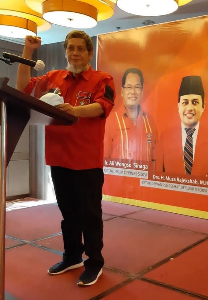 “Karena itu, sebagai senior SOKSI kami mengingatkan bahwa “segala perbuatan tidak baik pasti ada konsekuensi moralnya selain hukumnya.” Dalam berpolitik, janganlah cari lawan tetapi carilah kawan sebanyak mungkin, sebab jika anda terus menjual berarti pasti anda mengundang pembeli yang akan membeli anda. Berpikirlah cerdas dan besar, berjiwalah besar, dan belajarlah mengenali diri lalu berlombalah berkarya bagi kemajuan bangsa selain partai Anda,” katanya.