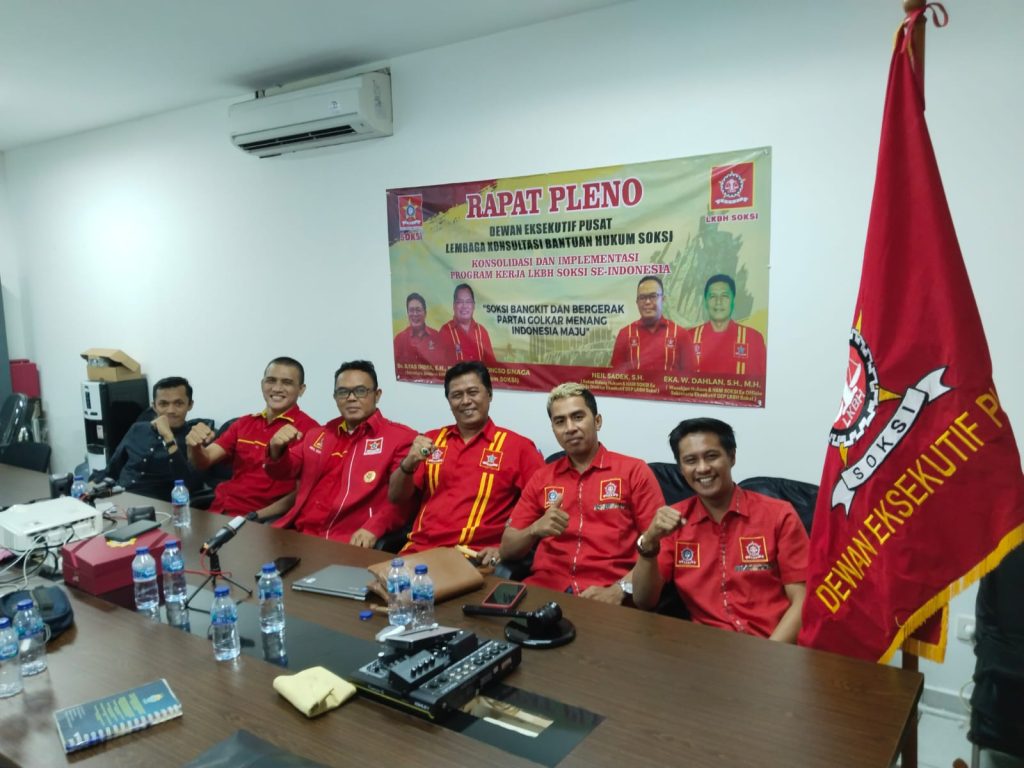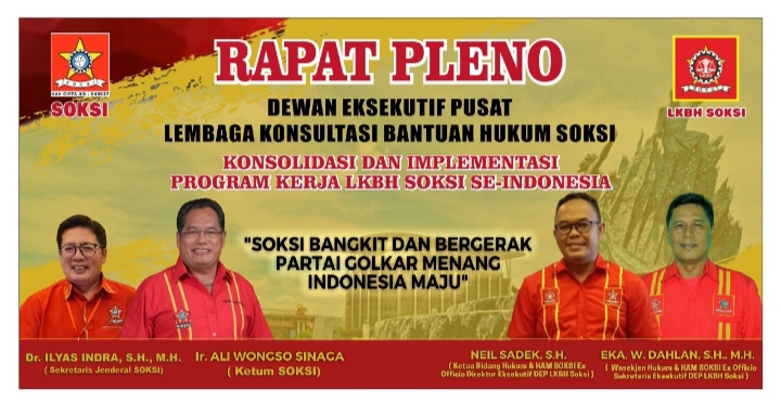 Jakarta, Buserbayangkaratv.comLKBH SOKSI tancap gas dan tidak mau membuang waktu, hingga di akhir tahun 2022 saja masih tetap menyelenggarakan Rapat Pleno 18/12 yang dihadiri oleh Pimpinan Pusat DEP LKBH SOKSI juga para Pengurus Daerah “Dewan Eksekutif Daerah” LKBH SOKSI se Indonesia, Dodi Boy Fena Loza, S.H., M.H. salah satu ketua DEP LKBH SOKSI mengatakan Para Pengacara yang bernaung dibawah panji LKBH SOKSI adalah kader SOKSI dibawah kepemimpinan Ketum Ir Ali Wongso Sinaga dan Sekjen Dr. Idra Ilyas, S.H., M.H. yang akan siap mengawal dan mempertahankan doktrin Karya Kekaryaan dalam bidang hukum.