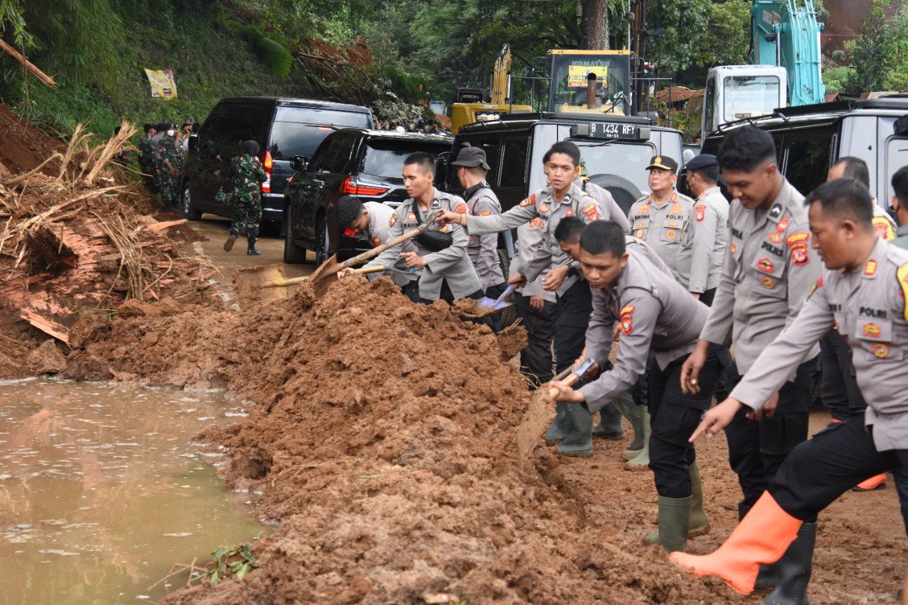 Polres Bogor bersama Instansi terkait dari Brimobda Polda Jabar, Sat Samapta Polda Jabar, Baharkam Mabes Polri, Brimob Resimen II Pelopor, Unsur TNI, Basarnas, BPBD, PMI, Relawan dan Instansi terkait lainnya, terus berupaya melakukan pencarian terhadap para korban tanah longsor akibat gempa yang terjadi pada Senin (23/11) di wilayah Kabupaten Cianjur Jawa Barat.