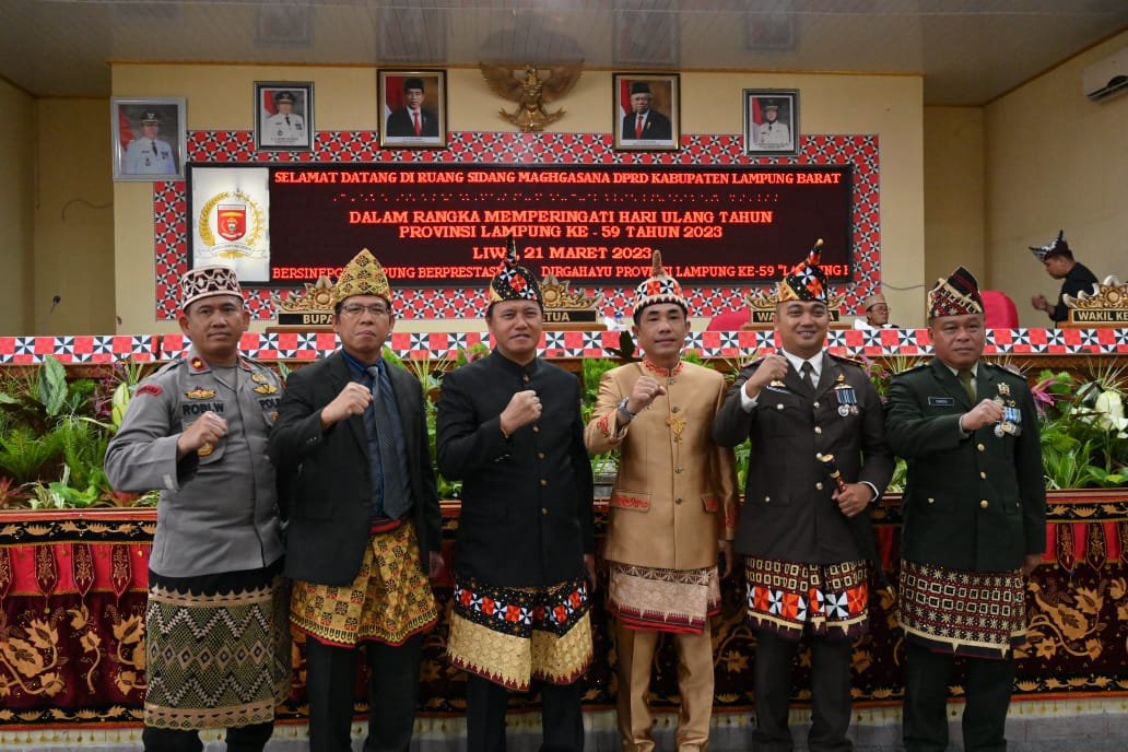 Rapat paripurna tersebut dihadiri oleh, Pj. Bupati Lambar, Nukman, Unsur Forkompimda Lambar, Kepala Organisasi Perangkat Daerah (OPD), Tokoh Agama, Tokoh Masyarakat, Tokoh Adat dan undangan lainnya. Pada kesempatan ini Ketua DPRD Lambar, Edi Novial selaku pemimpin rapat mengatakan, kegiatan hari ini merupakan peringatan hari ulang tahun (HUT) Provinsi Lampung yang telah terbentuk 59 tahun lalu.