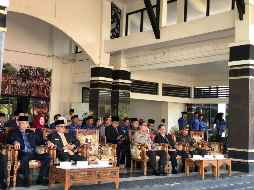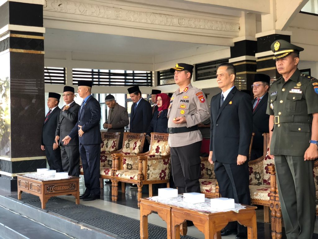 Bertindak selaku inspektur upacara Pj. Walikota Singkawang Drs. H. Sumastro, M.Si. dan dihadiri oleh unsur Forkopimda, anggota DPRD, Kepala SOPD, Lurah se Kota Singkawang beserta jajaran ASN.