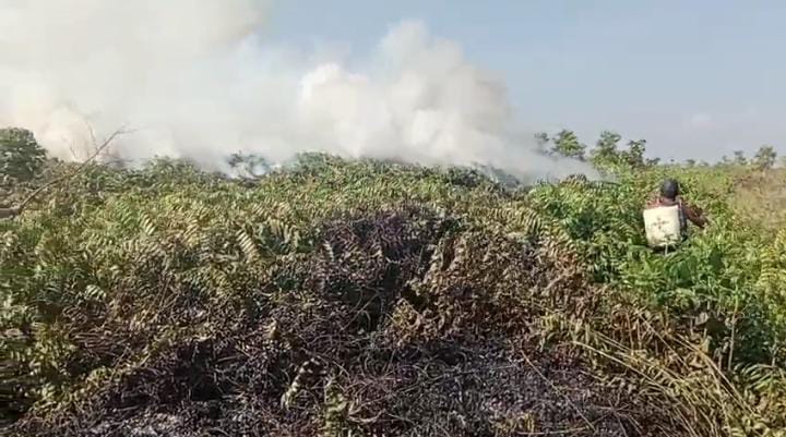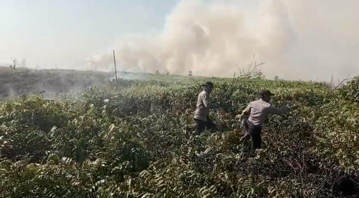 Setelah dilakukan pengecekan ke lokasi ternyata benar bahwa ada kebakaran lahan, dan saat itu juga langsung diupayakan untuk pemadaman.