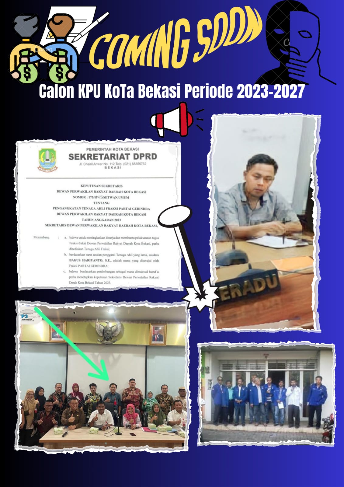- Bagus Hariyanto adalah sebagai tenaga Ahli Sekretariat Fraksi Gerindra Kota Bekasi dan terlibat Politik Praktis di Partai Gerindra terhitung Surat Tugas pada saat SK dibuat oleh Fraksi Gerindra 4 tahun yang lalu, adapun surat pemberhentian Tugas Tenaga Ahli kepada Bagus Hariyanto pada saat ini sebagai langkah untuk menutupi rekam jejaknya karena sudah ramai pembicaraan ditengah kalangan masyarakat Kota Bekasi.